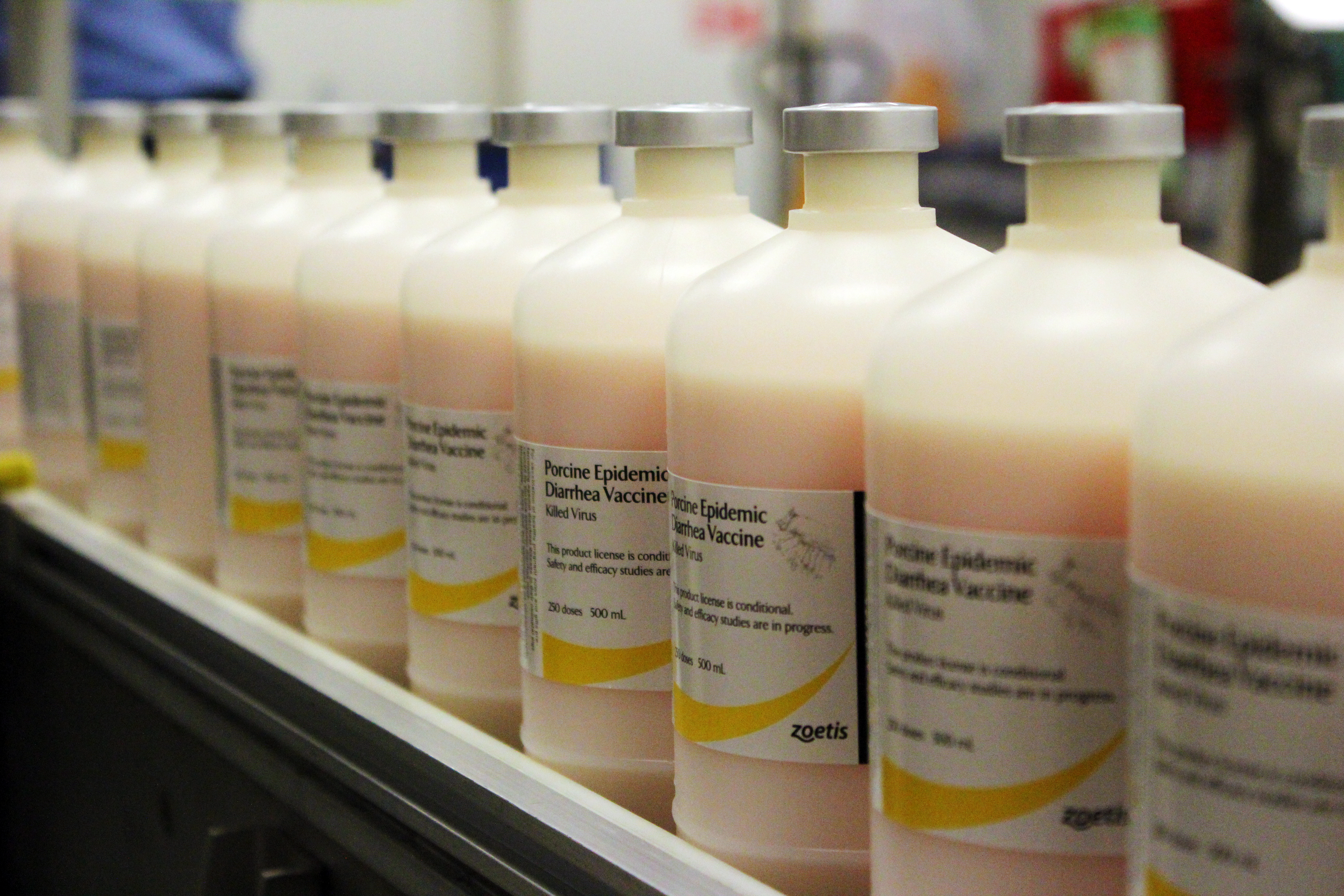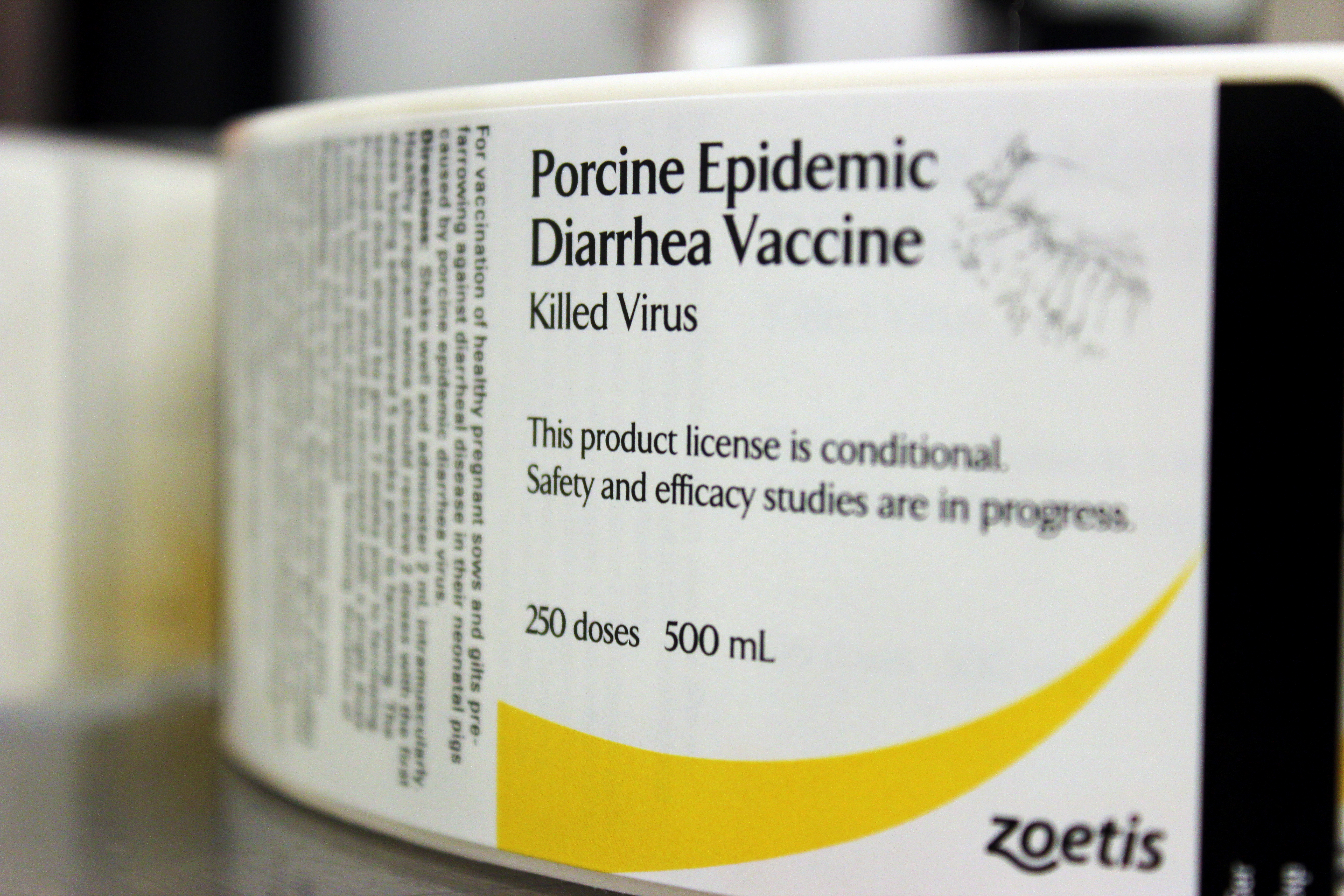 help fight porcine epidemic diarrhea virus (PEDv) in pigs. The two-dose